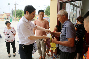 7月4日,正值炎夏酷暑,我校校长乔跃兵、工会主席路兰红一行来到我校对口帮扶村——海兴县张会亭乡小路村开展走访慰问活动,给他们送上生活用品和防暑降温物品。在村两委会议室,乔校长和张会亭乡党委书记杨庆尧、乡长赵硕驾及村两委班子成员进行了交流座谈,了解小路村脱贫工作进展和村产业经济发展情况,并听取了驻村工作队的工作汇报。