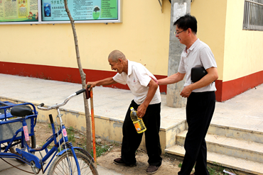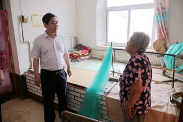 校长乔跃兵一行还来到了村里的对口帮扶户家中,与正在干活儿的老太太进行了亲切的攀谈,详细询问老人的身体状况及日常生活情况,为她送上亲切的问候,并送上了慰问品。