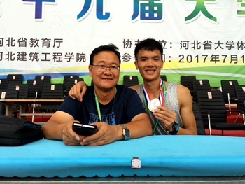 为了能在大运会中取得更好的成绩,教练员和运动员的训练工作自5月份就已经开展。体育组的老师们每人负责一类比赛项目,与运动员们一起晨迎朝阳,暮浴繁星,天气日益炎热却阻挡不了他们训练的热情。比赛期间,丁文峰、杨毅、刘华、邢智四位老师时刻和运动员们在一起,帮助他们解决各种问题,为他们加油打气。