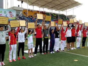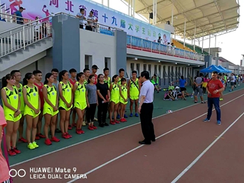近日,河北省第十九届大学生运动会在张家口市隆重开赛。本届大运会共有92所高校(含48所本科和44所专科)、3200余名运动员参赛。我校代表团一行27人于7月15日启程赴张家口参赛。校长乔跃兵担任团长、学工部部长闫献伟担任秘书长、丁文峰老师担任领队。在7天的激烈鏖战中,我校健儿勇夺金牌1枚,银牌4枚,铜牌2枚;总成绩女子团体第5名,男子团体第11名;我校代表团和代表队以良好的精神风貌共同荣获体育道德风尚奖。