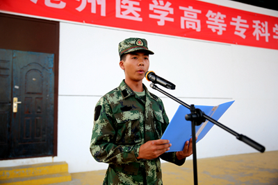 表演结束后,参训学生代表、口腔17-7班率子进同学发言,他代表全体参训同学向辛勤付出的教官和老师们表示感谢,并表示在今后的学习生活中,将继续发扬积极向上、顽强拼搏、团结互助的精神。参训教官代表、辛世梁同学发言,他代表全体参训学生教官向学校领导以及各位老师的大力支持表示衷心的感谢,并号召全体新生在今后的学习、生活中,继续发扬军训时的作风,吃苦耐劳,严守纪律,勤奋学习,以优异的成绩创造更加美好的明天。