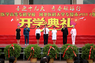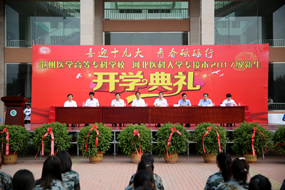 金秋九月,丹桂飘香。3600余名怀揣医学梦想的莘莘学子来到我校,成为新一批医专人。9月25日上午,2017级新生开学典礼暨河北医科大学2017级专接本新生开学典礼在我校餐厅前广场隆重举行。河北医科大学招生办主任兼教务处副处长邳克江、党政办公室副主任梁磊,我校领导班子成员,副科级以上干部,新生班辅导员以及2017级全体新生参加了典礼。典礼由副校长张中兴主持。