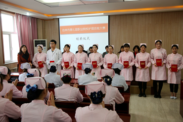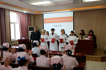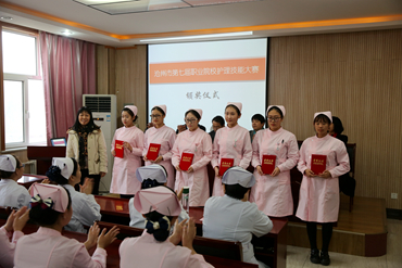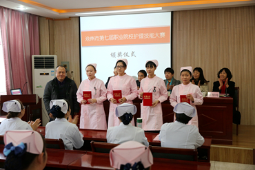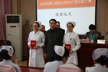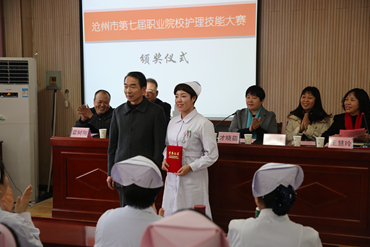 11月21日下午,由沧州市教育局主办、我校护理系承办的沧州市第七届职业院校学生教师护理技能大赛颁奖仪式在我校医护实训中心A座举行。沧州市教育局胡同发副局长,我校才晓茹副校长,教育局职成科霍树刚科长、高健副科长,渤海专修学校张玉仓校长,我校护理系王慧玲主任出席了本次颁奖仪式;护理系80名参赛学生和老师参加了颁奖仪式。颁奖仪式由护理系王慧玲主任主持。