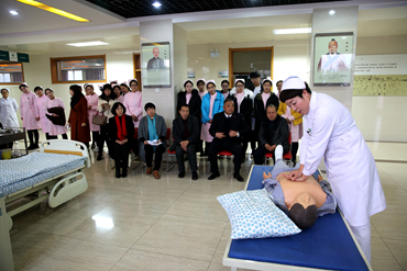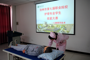 随后,才晓茹副校长用了“三个感谢”和“三个希望”对本次比赛中师生们取得的成绩给予肯定,并对师生提出了更高的要求。市教育局胡同发副局长在讲话中强调了护理业对未来经济和社会发展的重要影响,提出要提高护理技术和专业素质;同时他还代表市教育局向同学们提出了三点希望:一是要培养自己崇高的奉献精神;二是要刻苦学习,熟练掌握业务技能;三是要养成勤快细致的做事习惯。最后,领导们和参赛师生一同观看了由我校田芬霞老师和唐晓焜同学展示的心肺复苏、静脉输液两项技能操作。