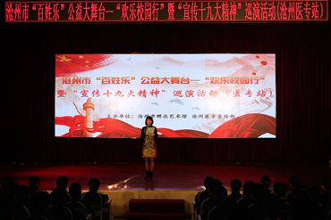 近日,由沧州市群艺馆主办、我校组织宣传部承办的“百姓乐”公益大舞台——暨“宣传十九大精神”巡演走进我校,为师生们带来了一场精彩的视听盛宴。