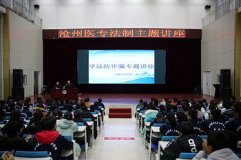 根据学校工作安排,11月份为我校法制教育宣传月。11月27日下午,我校邀请南陈屯派出所曹立中警官和南陈屯派出所驻沧州医专警务室李志海警官,在东报告厅为我校2017级新生作法制教育主题讲座。我校400余名新生代表聆听了本次讲座,学工部胡艳华副部长主持本次讲座。