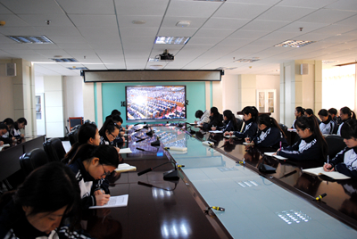 我校师生员工热切关注大会盛况,学校党委理论学习中心组成员在行政楼3楼会议室集中观看了现场直播,学校师生也通过电视、广播、网络等多种方式,收听、收看了庆祝改革开放40周年大会。大家通过直播深刻领会大会精神,共同感受改革开放40周年的喜悦,一同畅想祖国更加美好的明天。