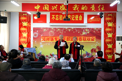 1月16日上午,老干部活动室充满了欢声笑语,一年一度的迎新春联欢会正在这里举办。我校党委书记刘健、党委副书记李炳仁来到老干部活动室,与百余名离退休老干部欢聚一堂,亲切交谈,共迎新年,共话沧州医专美好的明天。
