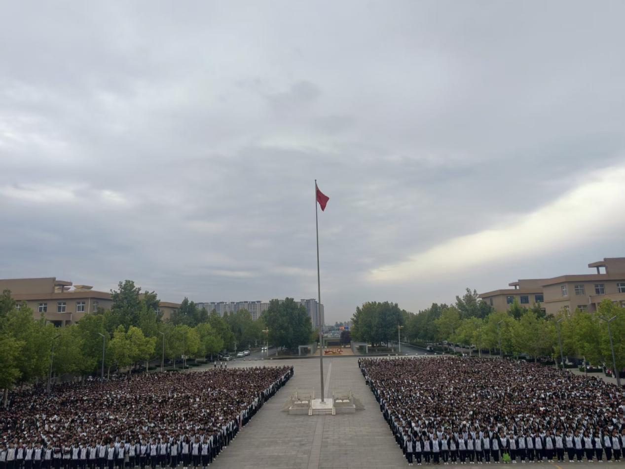 七时整,升旗仪式正式开始。师生肃立行注目礼,高唱国歌,五星红旗在晨曦中迎风飘扬,激昂的旋律回荡校园,深植于每个人心中的爱国情怀在此刻澎湃涌动。