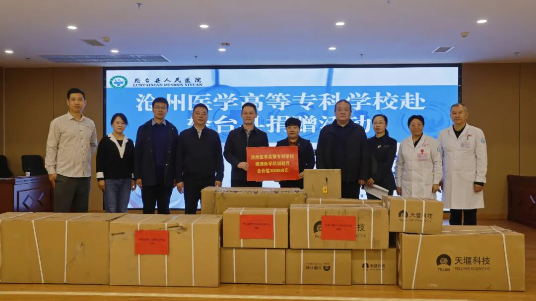▲我校向轮台县人民医院捐赠医学培训教具