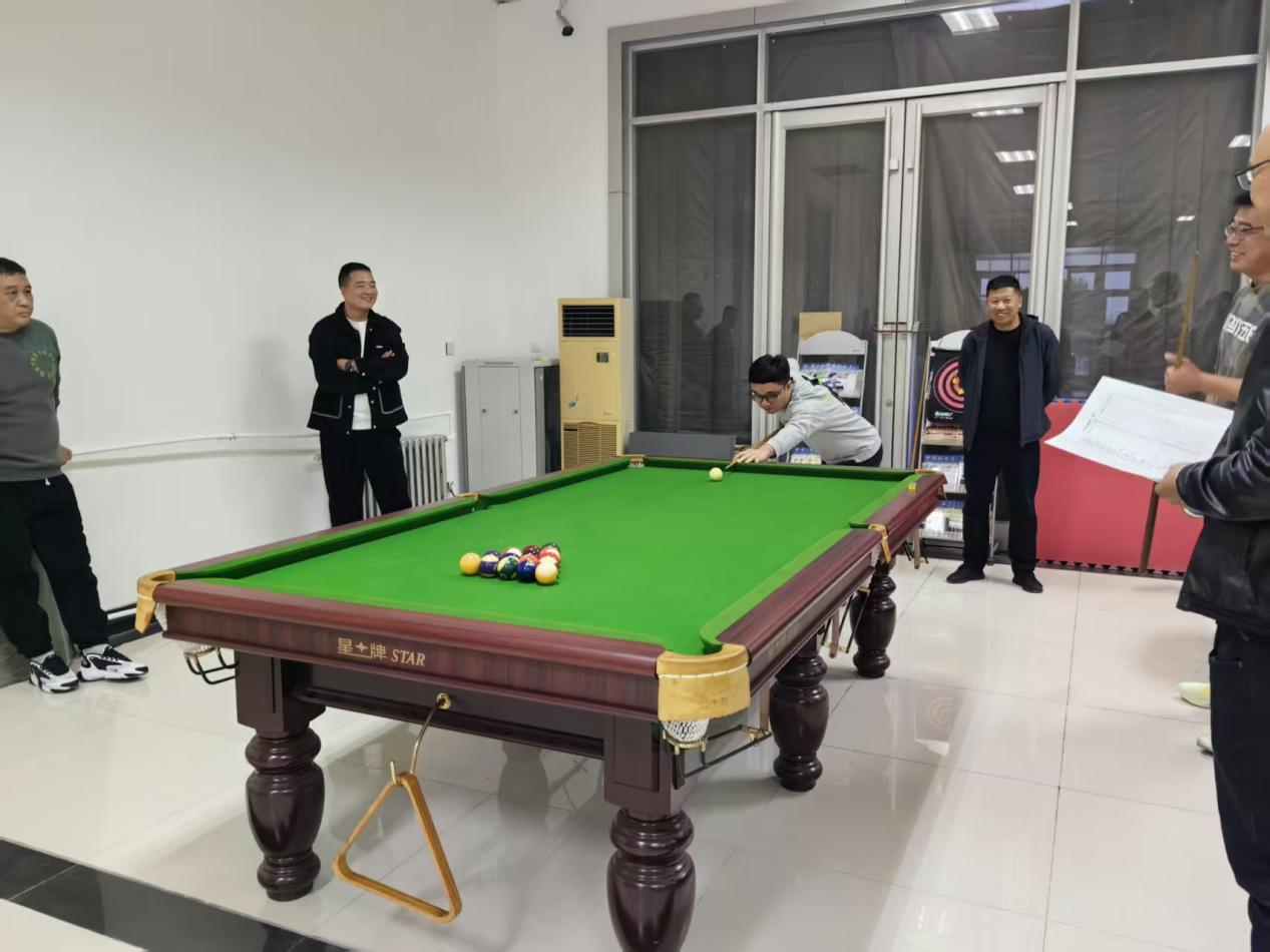 “砰!”随着清脆的开球声,台球桌上的较量拉开序幕。选手们手握球杆,眼神专注,时而俯身瞄准,时而果断出击。每一次精准的击打都引来阵阵喝彩!无论是经验丰富的“老将”还是初露锋芒的“新秀”,都在这方寸之间展现了非凡的技艺和沉稳的心态。