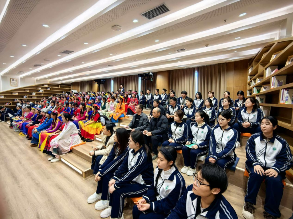 才晓茹巧妙运用“十二、五、四、四”四个数字,构建起一个清晰而坚实的理论框架:从“十二个必须”的根本遵循,到“五个共同”的历史内核;从“四个与共”的核心理念,到四对关系的辩证统一。她以鲜活的历史事实和生动的现实案例,讲述了各民族共同开拓辽阔疆域、共同缔造统一多民族国家、共同书写辉煌历史、共同创造灿烂文化、共同培育伟大民族精神的壮丽史诗。同学们深刻体悟到,中华文化是各民族文化的集大成者,中华民族是由56个民族汇聚而成的多元一体命运共同体。