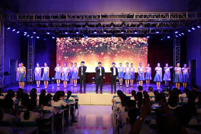 激情燃烧的五月,正如火红的青春。白衣天使带着青春的梦想,从沧州医专隆重启航。5月19日晚,我校第一学术报告厅流光溢彩、热闹非凡,学校2017年欢送实习生联欢晚会在这里隆重举行。学校领导班子出席了晚会;副科级以上干部、教师代表以及即将参加实习的同学观看了演出。