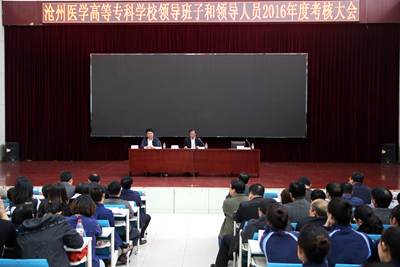 会议由考核组组长杨景治主持,他首先对本次考核工作的程序及相关要求作了说明。随后,校党委书记刘健代表学校作了沧州医专2016年度领导班子述职报告,从三个方面总结了学校2016年度的工作:一、加强学习,提升素质,提高班子办学治校、攻坚克难能力;二、围绕立德树人,推动重点工作改革创新;三、认真落实“两个责任”,打造风清气正的廉洁校园。他指出,一年来,我校各方面工作虽然取得了一定的成绩,但还存在着一些短板。2017年,学校将深入学习贯彻党的十八届六中全会和习近平总书记系列重要讲话精神,强化“四个意识”,认真落实高等职业教育创新发展(2015—2018)行动计划,以省优质校建设为抓手,抢抓机遇,锐意改革,努力提升整体办学水平,以优异成绩迎接党的十九大胜利召开。