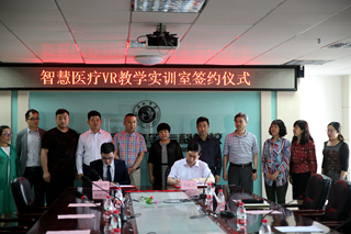 为了贯彻国务院《“十三五”战略性新兴产业发展规划》的指导精神,推动虚拟现实技术在医疗教育领域的应用,革新医学教学方式,我校与北京奥医科技有限公司开展了战略合作,联合建成了全国第一家智慧医疗VR教学实训室,并于5月10日签署了合作协议。北京奥医科技有限公司CEO杨俊明、CTO梁彦伟、COO张聚豪、北京东方贝格投资有限公司副董事长刘友存、河北智媒投资有限公司董事长刘磊来我校参加了协议签署仪式;我校校长乔跃兵、副校长才晓茹及相关处室、系部领导参加了仪式。协议签署仪式由副校长才晓茹主持。河北日报、沧州日报、沧州晚报、沧州电视台、今日头条、腾讯、新浪等新闻媒体朋友到达现场报道签约仪式。