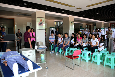 5月11日,我校医学技术系和医学系的师生们走出校门,走进运河区西环办事处永和社区,为广大居民提供现场诊疗服务。师生们为社区居民免费提供测血型、维修清洗眼镜服务,并对居民们进行现场急救知识培训。活动得到了居民们的热烈欢迎,除了前期预约而来的居民,随着活动的进行,现场聚集了越来越多的居民前来了解各种医疗健康知识。老师和同学们以高度的职业道德和服务热情投身到义务诊疗与培训中来,一遍遍示范并手把手传授居民正确的急救动作,认真为居民做好每一项服务活动。活动结束后,很多市民依然不愿离去,聚拢在老师和同学们的周围,询问健康常识,相约下次再来。