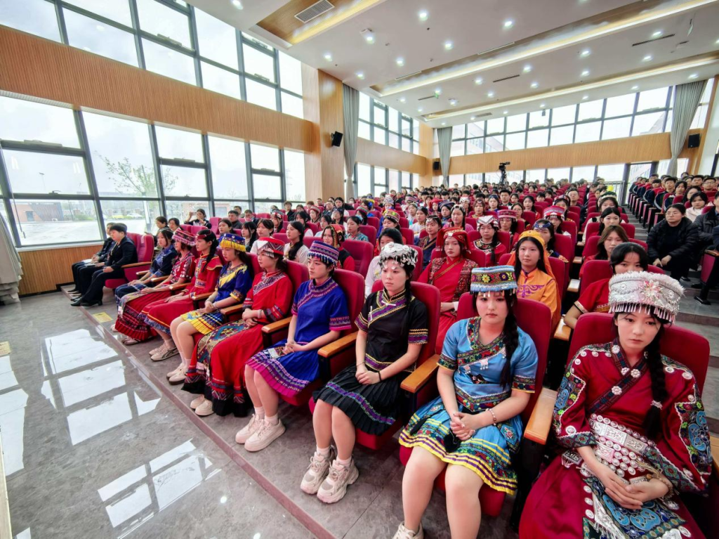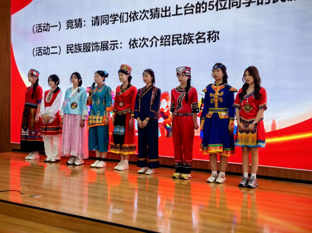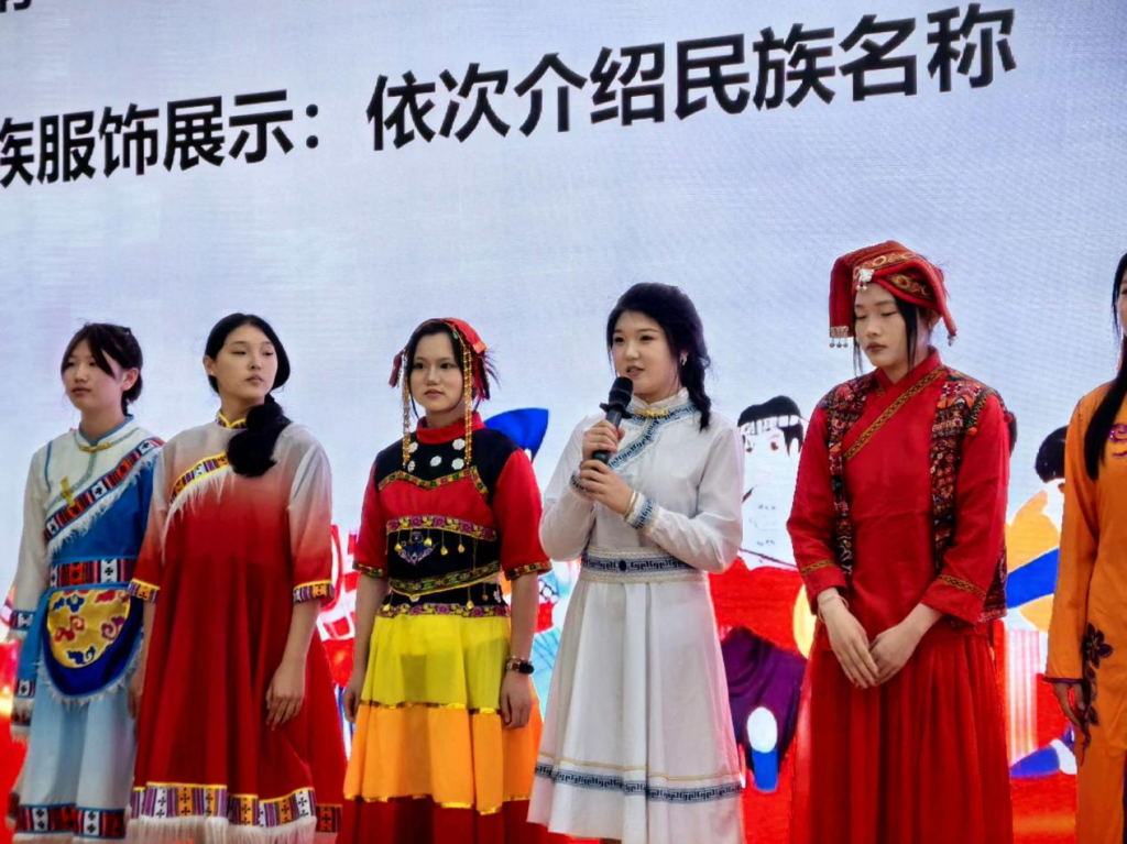 当身着 56 个民族传统服饰的学子依次登台,全场瞬间为之动容:蒙古族服饰的豪迈大气、苗族服饰的灵动秀美、维吾尔族服饰的绚烂夺目、藏族服饰的端庄典雅......五十六种服饰绽放五十六种光彩,五十六句告白诉说五十六份深情,生动诠释“五十六族兄弟姐妹是一家”的最美模样,展现出中华文化百花齐放、交融共生的蓬勃生机。