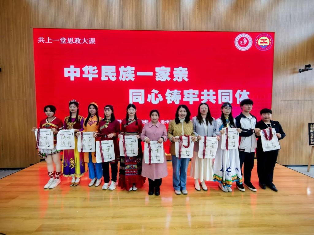 本次思政课打破校际壁垒、贯通学段差异,创新采用理论讲授、历史溯源、互动体验、文化展演四维融合模式,摒弃传统说教式授课,以有高度的理论、有深度的历史、有温度的故事,让思政教育入脑入心、落地生根。学校党委书记才晓茹教授、我校教师刘翠、沧州工贸学校教师李倩联袂主讲,以真挚讲述、鲜活案例、暖心互动,将“石榴籽”精神深植青年心田。