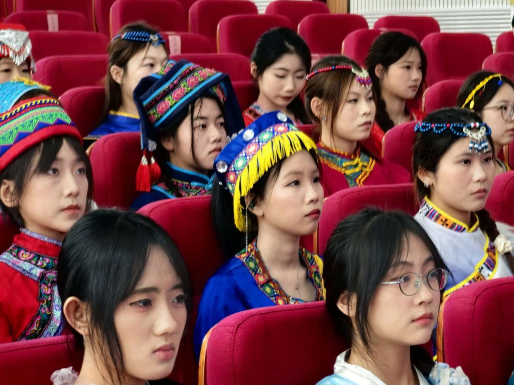 “中华民族是1个民族还是56个民族?”一句亲切提问,引发全场热烈思考。才晓茹教授回应大家:我们从不是在“1”与“56”间做选择,而是56个民族手拉手、心贴心,凝聚成一个中华民族。质朴的话语,让共同体理念深深扎根在每一位学子心中。