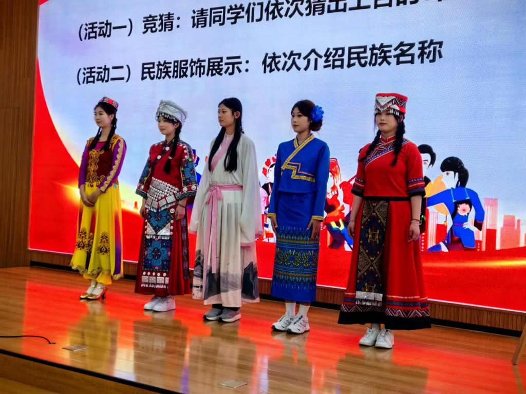趣味互动与文化展演轮番登场,温情满满、惊喜不断。民族服饰趣味竞猜环节,同学们踊跃举手、积极应答,每一次精准辨识都收获热烈掌声,答对的师生惊喜领取沧医专属“狮小沧”“喵小医”吉祥物与健康环保袋,小小礼物承载满满心意,让团结友爱氛围充盈全场。