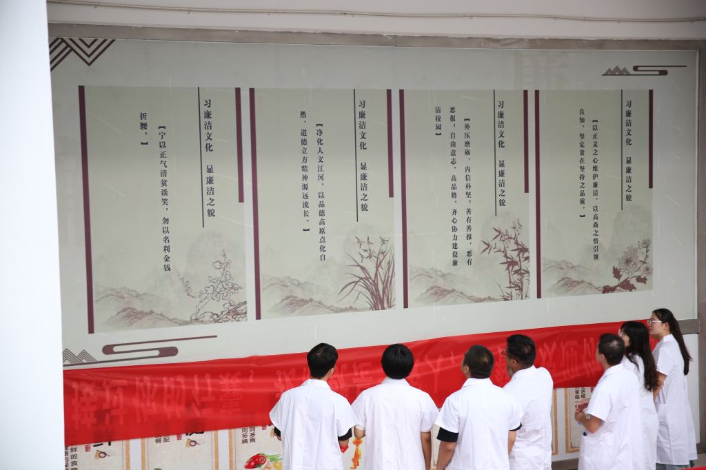 严把重要关键点,关注学生的切身利益。在学生管理中,坚持阳光管理,实行学生事务全公开。用廉洁的学生管理工作,去影响和教育学生,促进学生廉洁思维的形成,养成文明行为。在教学楼楼道、学生餐厅等地制作廉洁文化墙,通过廉洁人物形象,廉洁标语、清廉小故事沉浸式打造廉洁文化氛围,使清廉理念入眼入脑,深植于学生心中,廉洁之风浸润校园的每一个角落。